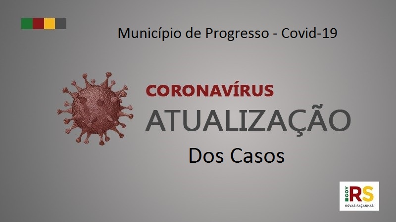 Atualização dos casos do novo coronavirus, no município de Progresso: Confirmados são 224, sendo 218 recuperados, 3 ativos, 1 internado e 2 óbitos. Segundo o secretário Rui Tedeschi, estamos começando a vacinação e precisamos mais um pouco de paciência da população, temos que continuar com os quidados para evitar o contágio.